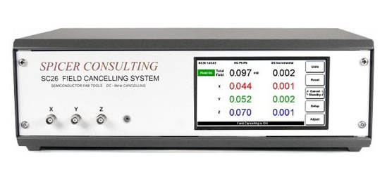 晶片傳輸機器人在300 mm的晶片中活動,會產(chǎn)生9 KHz的磁場,會限制電子束的性能,以及下一個半導體CD節(jié)點。SC26是一種寬帶消磁系統(tǒng),可以實現(xiàn)從DC到9 KHz以上范圍的磁場消除。為了實現(xiàn)寬帶消磁,SC26采用低電感場消除電纜,安裝在電子束工具附件中。