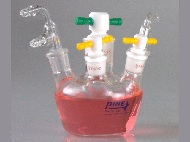 PINE公司原裝電解池,采用優(yōu)質(zhì)高硼硅玻璃,開模加工而成。具有優(yōu)良的化學特性。配備全套的封口件。尤其是一個F型雙進氣口,以及L型出氣口,可以有效保證電解池的氣密性。加上PINE獨特的陶瓷軸承密封套,即使在高速旋轉(zhuǎn)狀態(tài)下,也能完成充氣實驗。