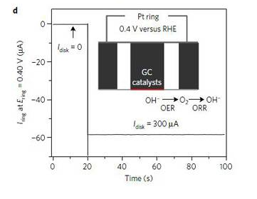 (4)應(yīng)用方向:RRDE一般用于中間產(chǎn)物機(jī)理研究,在盤上發(fā)生反應(yīng),環(huán)上收集中間產(chǎn)物。收集的中間產(chǎn)物可以是液體如過氧化氫,也可以是氣體如氧氣,還可以是其它物質(zhì)。RRDE的收集率只與電極尺寸有關(guān),與研究體系無關(guān)。