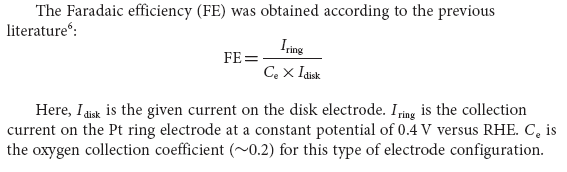 如下是利用美國(guó)PINE公司WaveDriver200雙恒電位儀Aftermath軟件測(cè)試OER法拉第效率。測(cè)量原理:在盤電極上加一個(gè)恒電流發(fā)生OER反應(yīng)產(chǎn)生氧氣,在環(huán)電極上加一個(gè)恒電壓發(fā)生ORR反應(yīng)消耗氧氣,通過盤電流、環(huán)電流以及盤環(huán)電極的收集效率即可計(jì)算法法拉第效率FE。