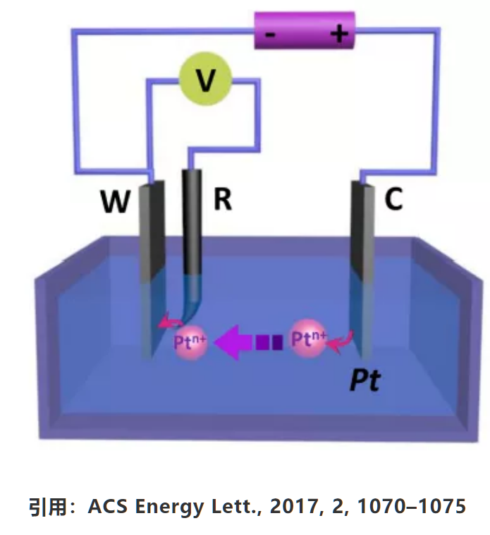 一直以來,由工作電極(WE)、參比電極(RE)和對電極(CE)組成的三電極體系是研究電催化的重要工具。很長一段時間以來,鉑(Pt)因其化學(xué)惰性而被廣泛作為對電極。然而,近年來發(fā)現(xiàn),在氧化條件和某些電解質(zhì)條件下,Pt易發(fā)生溶解。而這些微量的Pt離子在還原電位下可在工作電極表面發(fā)生Pt沉積。由于Pt在許多反應(yīng)中具有優(yōu)異的催化活性,這種沉積現(xiàn)象使得實(shí)驗所測數(shù)據(jù)存在問題。因此,在電催化研究中越來越多地使用C對電極,如石墨對電極取代Pt對電極。