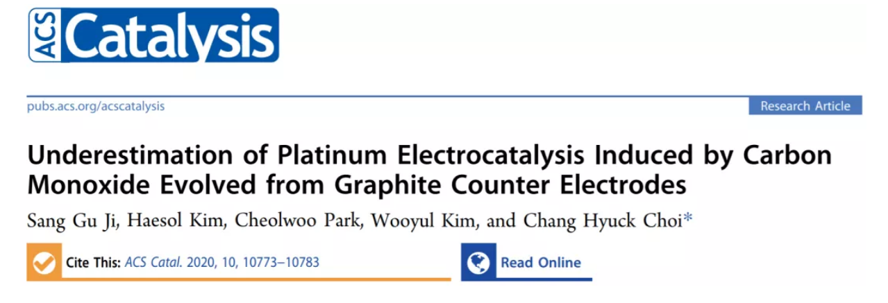 韓國光州科學(xué)技術(shù)院的Chang Hyuck Choi等人證明了使用石墨作為對電極時會嚴(yán)重影響電催化材料性能的精確評估。相關(guān)工作以《Underestimation of Platinum Electrocatalysis Induced by Carbon Monoxide Evolved from Graphite Counter Electrodes》為題在《ACS Catalysis》上發(fā)表論文。