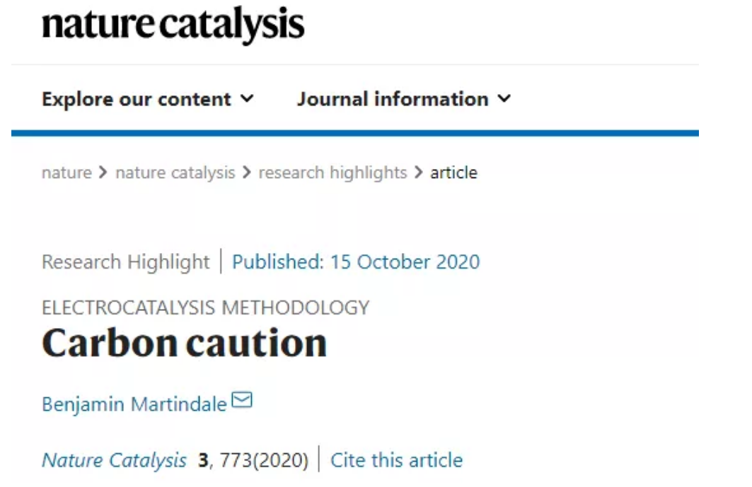 來自哈佛大學(xué)的Benjamin Martindale對此進(jìn)行了亮眼報道,相關(guān)點(diǎn)評以《Carbon caution》為題在《Nature Catalysis》上進(jìn)行報道。