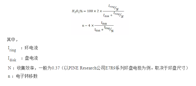 氧還原反應(ORR)的電子轉(zhuǎn)移數(shù)n和相應的雙氧水(中間產(chǎn)物)產(chǎn)率%可分別通過公式測得: