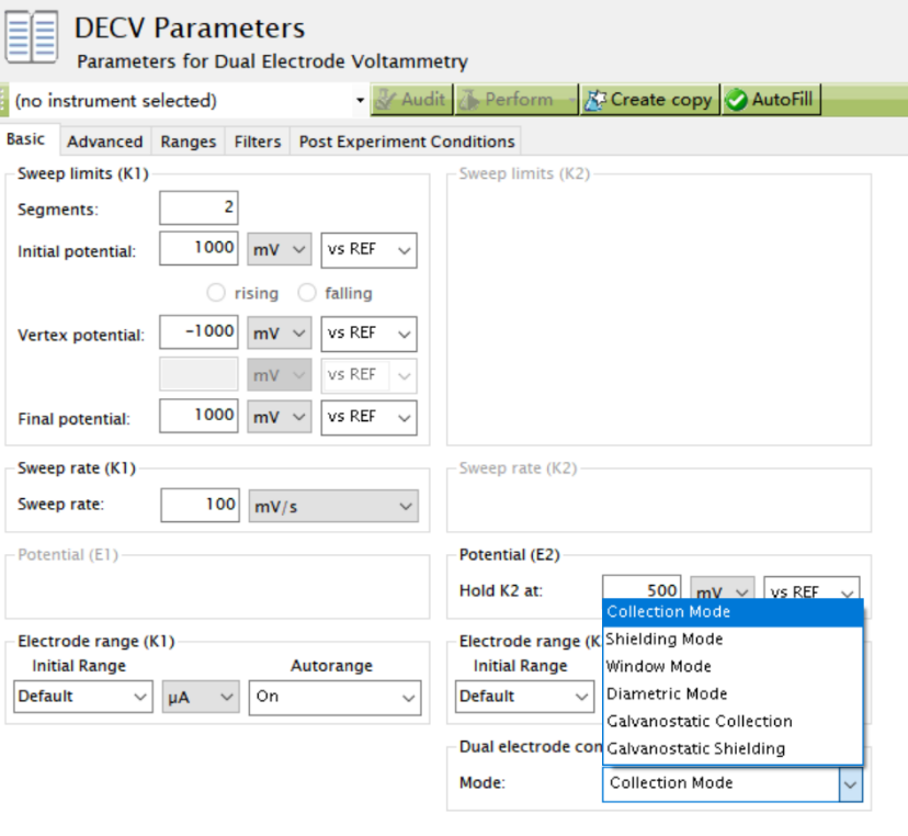 Window Mode:盤和環(huán)電極同時設(shè)置CV或LSV方法;