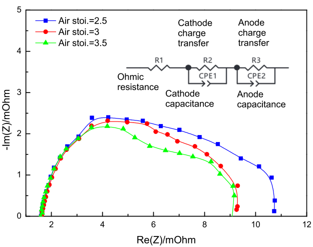 空氣化學(xué)計(jì)量比對(duì)PEMFC的極化曲線和EIS曲線的影響