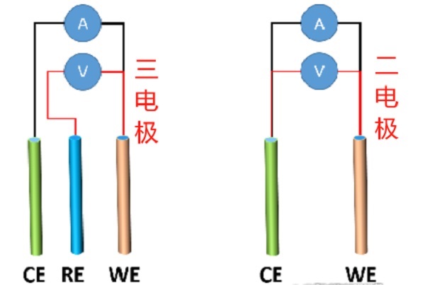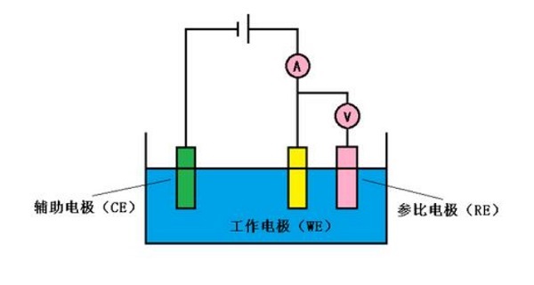 “三電極體系”又稱“三電極、兩回路”,實驗主要由電化學工作站、電解池、工作電極、參比電極、對電極、電解液等組成。三電極體有兩個回路:極化回路與測量回路。極化回路是施加一個電流,測量回來則是記錄電壓。
