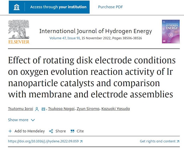 (旋轉(zhuǎn)圓盤電極條件對Ir納米顆粒催化劑析氧反應(yīng)活性的影響及其與膜和電極組件的比較)