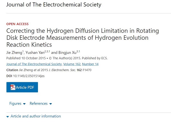 (旋轉(zhuǎn)圓盤電極析氫反應(yīng)動力學(xué)測量中氫擴(kuò)散極限的修正)