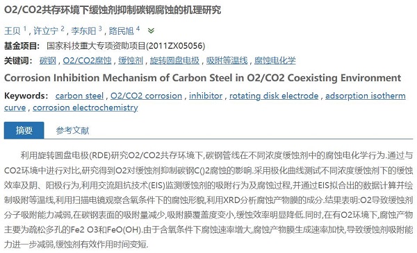 (利用旋轉(zhuǎn)圓盤電極(RDE)研究O2/CO2共存環(huán)境下,碳鋼管線在不同濃度緩蝕劑中的腐蝕電化學(xué)行為)