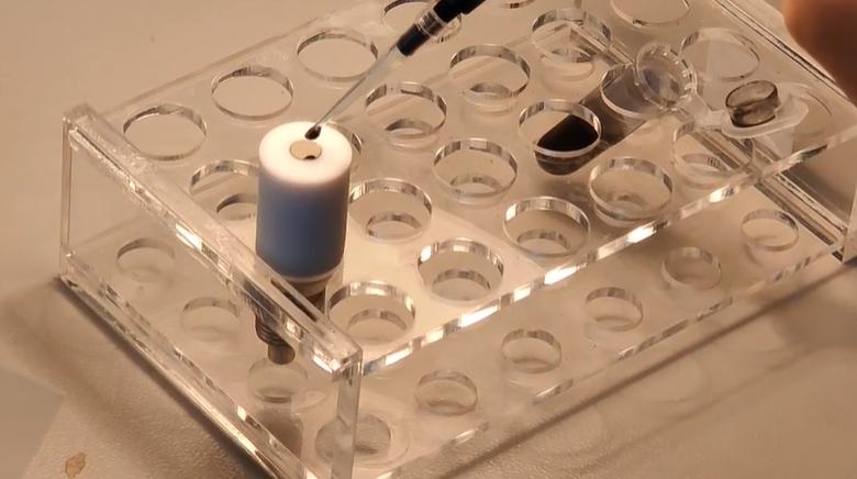 這種操作方式非常低效,單個電極從覆膜到干燥要30分鐘,影響旋轉(zhuǎn)圓盤電極主機(jī)測試,耽誤實(shí)驗(yàn)進(jìn)度。有的操作人員圖省事,直接滴涂操作,存在覆膜尺寸、厚度不均勻的缺點(diǎn),直接影響到實(shí)驗(yàn)測試數(shù)據(jù)。