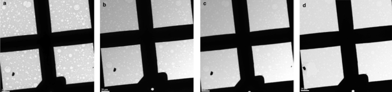 TEM Carbon film cleaning time: a-0s, b-240s, c-480s, d-720s